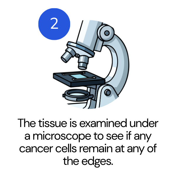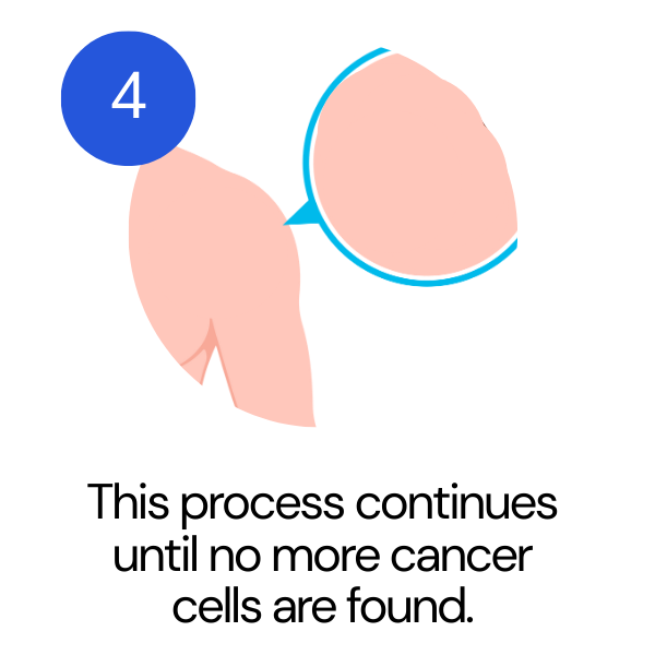 4. If cancer cells are found, another thin layer is removed only where cancer remains.