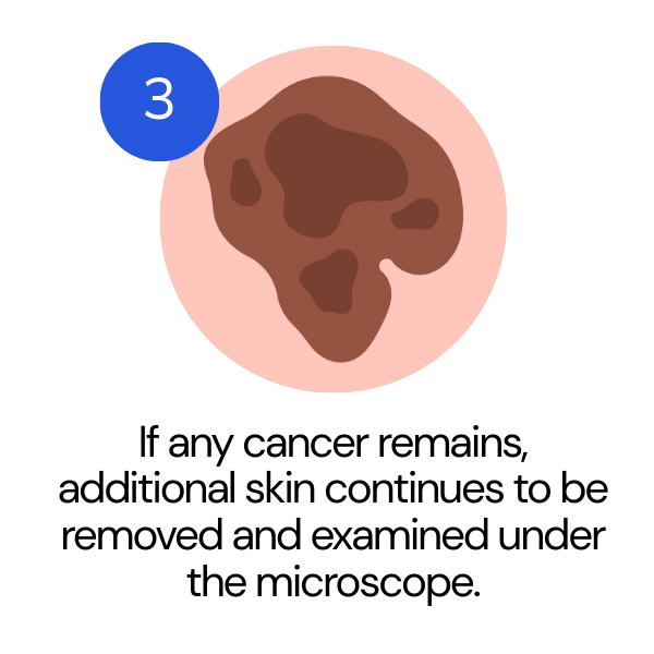 This process continues until no cancer cells remain, ensuring the cancer is fully removed while preserving as much healthy skin as possible.